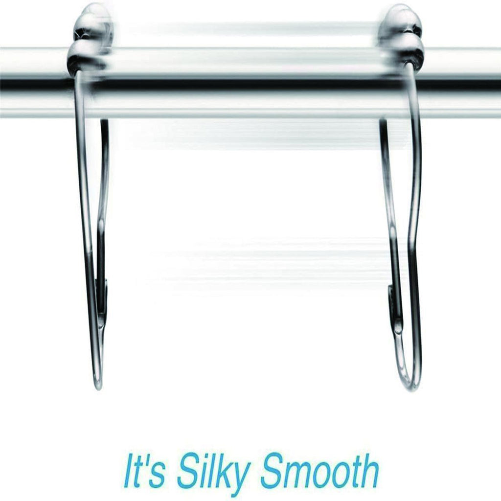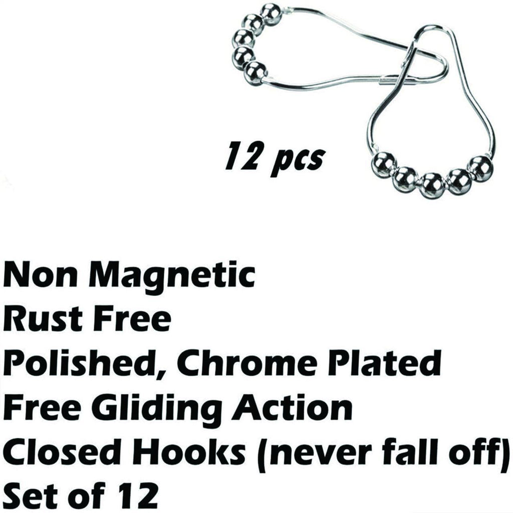 • ✔【HEAVY-DUTY CLOSING HOOKS】These shower hooks are strong enough to support heavy shower curtains. The widened U-shaped notch and sealed closure design make them prevent curtains from slipping off the ring. You can pull the shower curtain as quickly as possible without worrying that it will fall.