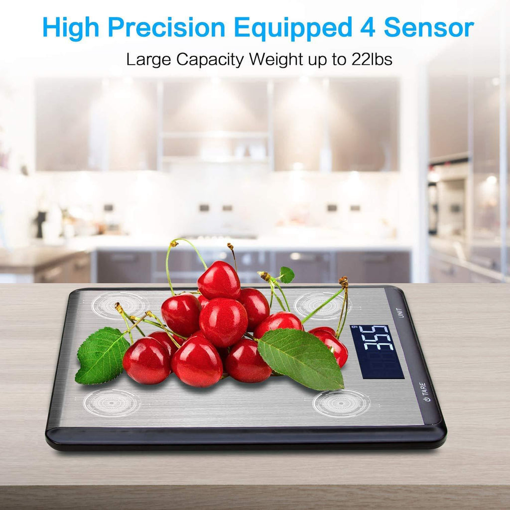 - 【Waterproof and Tare Function】Constructed with stainless steel surface for our kitchen digital scale, hygienic and easy to keep clean. Features waterproof and tare function, which helps to zero the scales for the container you are using, also allows for measurement of multiple ingredients in the same container without having to include the weight of the container in the final measurement.