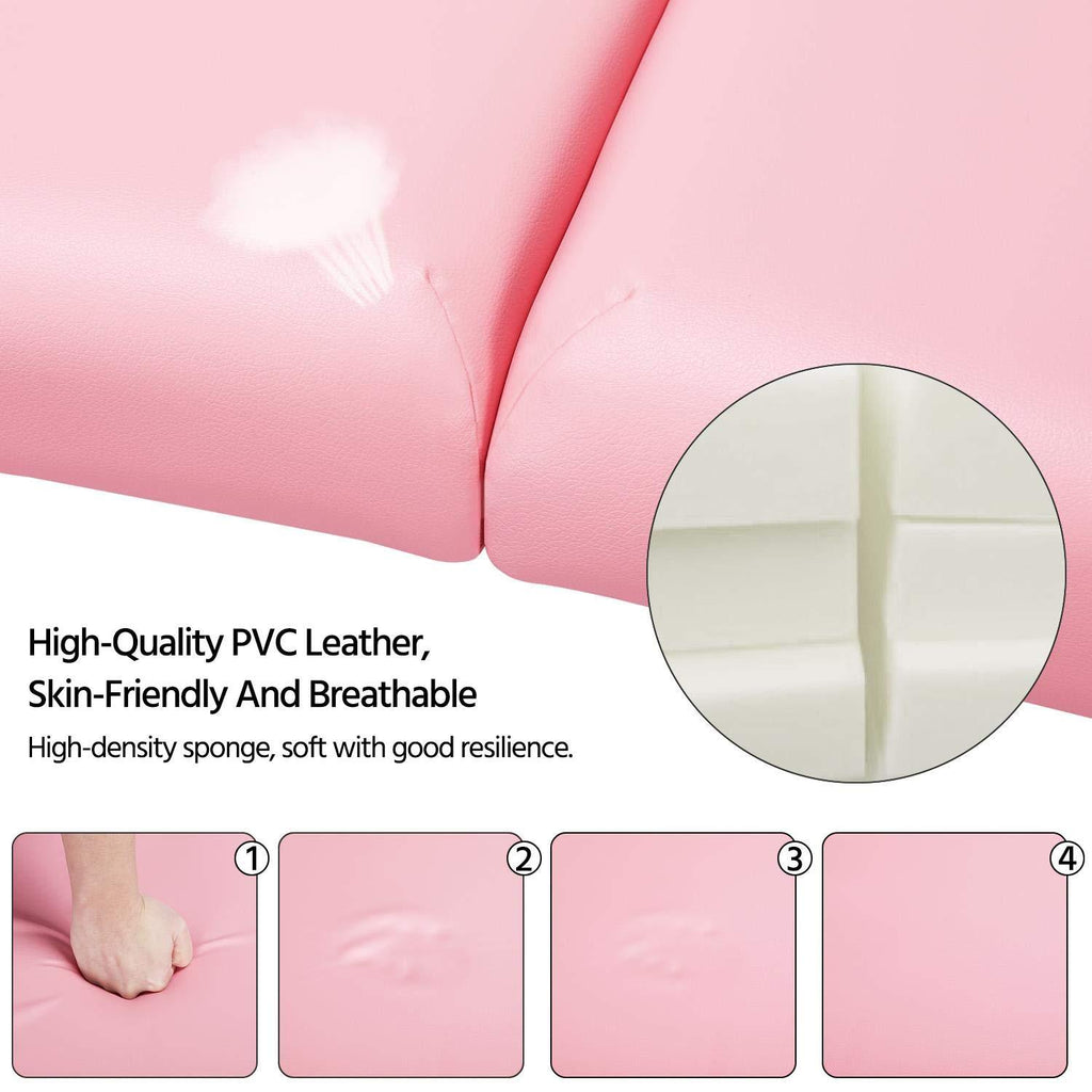 Massage Table Portable Massage Bed Massage Therapy Table Spa Bed 84 Inch Adjustable 2 Fold Salon Bed Face Cradle Bed Pink